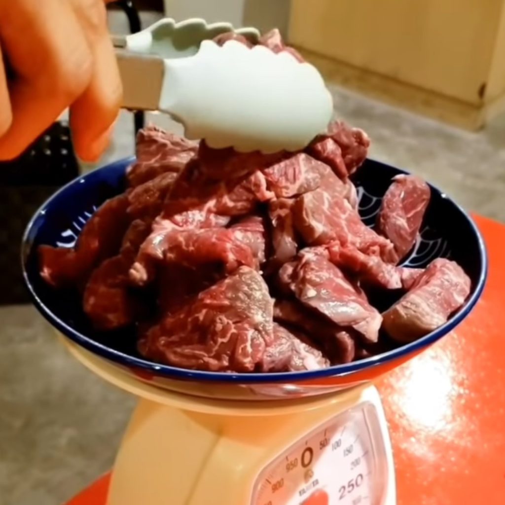テーブルで「ヨイショ! ヨイショ!」の掛け声と共に、量りにどんどんお肉を盛ってくれます😲