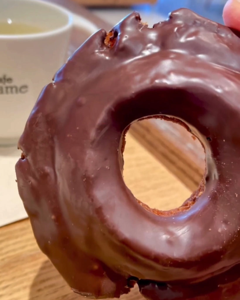 チョコがしっかりかかっているのに、思ったほど重くなくて、ドーナツサクサクでむしろ軽い感じすらしてきます。