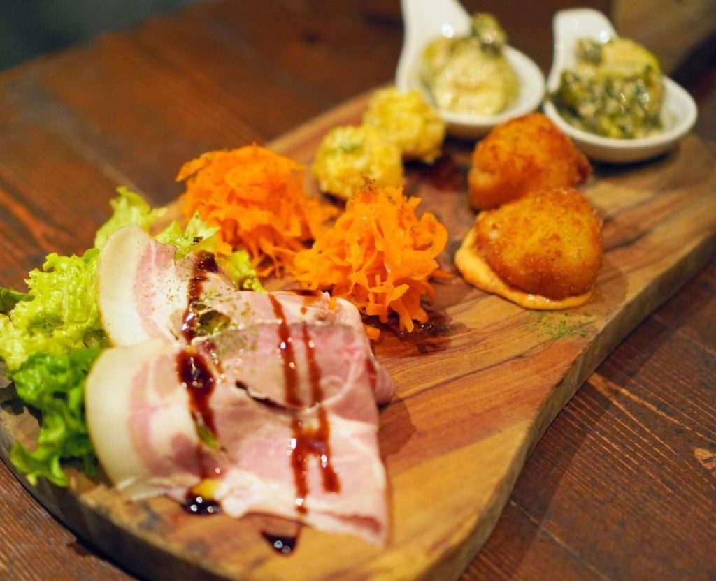 ハムやニョッキ、キャロットラペ、ズッキーニ、コロッケの5種がのってます👌🏻