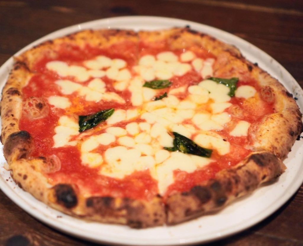 石窯で焼き上げられた香ばしいモッチモチの生地に、酸味の効いたトマトソースとあっさりしたモッツァレラチーズがめちゃくちゃ美味しい🤤