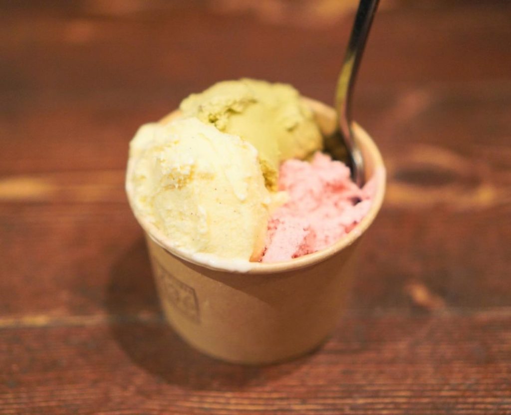 ジェラートはさっぱり系のあまおうと、濃厚タイプのピスタチオ、バニラがちょうど良かった🍨