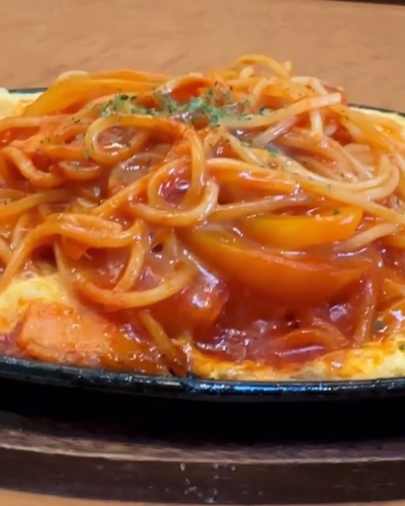 スフレ状で超ふっわふわ、陶板の上でアッツアツのオムライス🤩