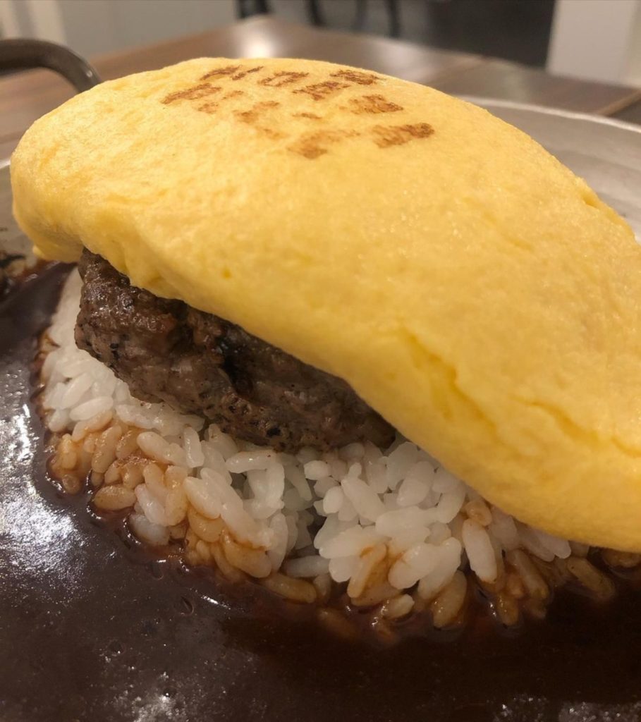 ガッツリのハンバーグにとろとろオムレツが乗っかってボリューム満点の一皿!