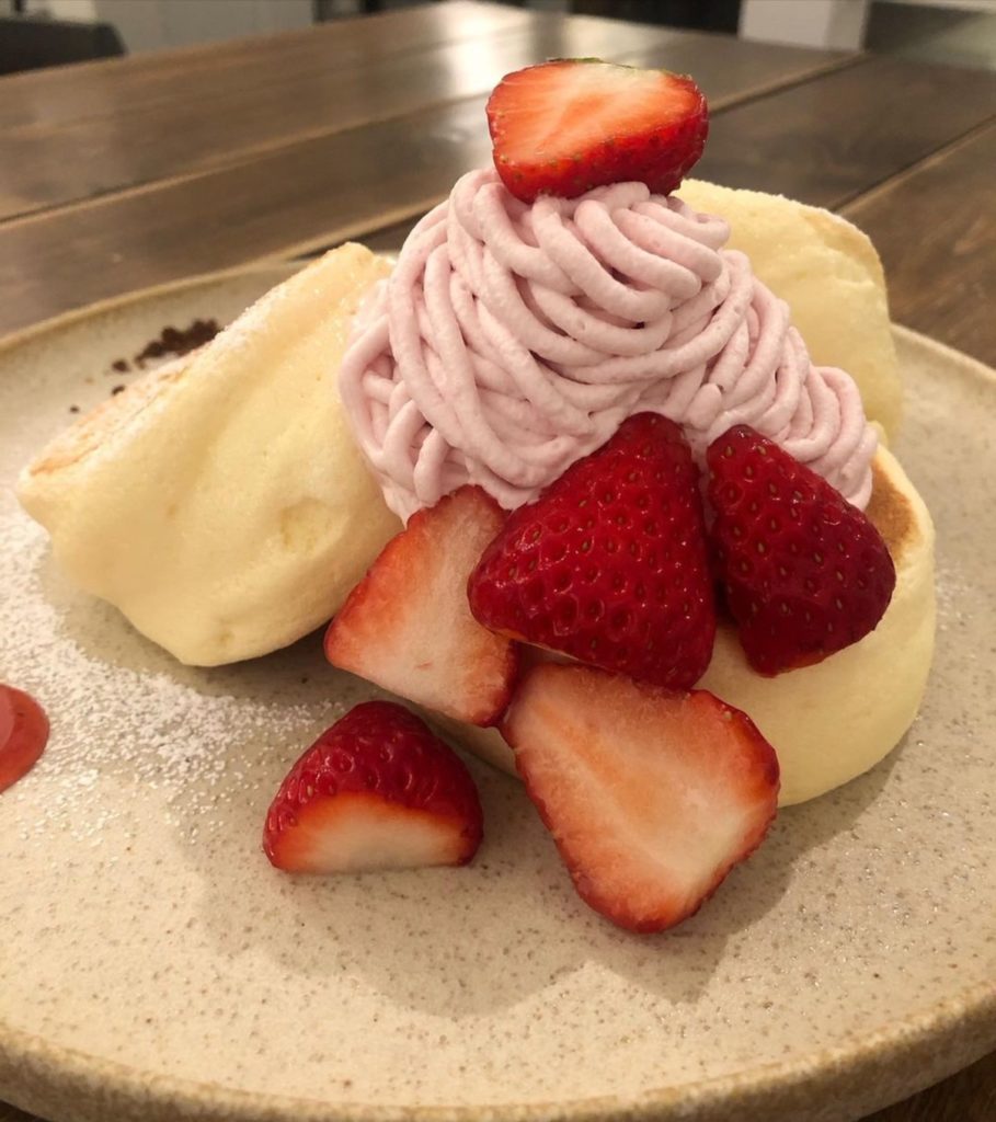 ふわふわパンケーキにたっぷりのベリーペーストだから大満足のスイーツでした😍