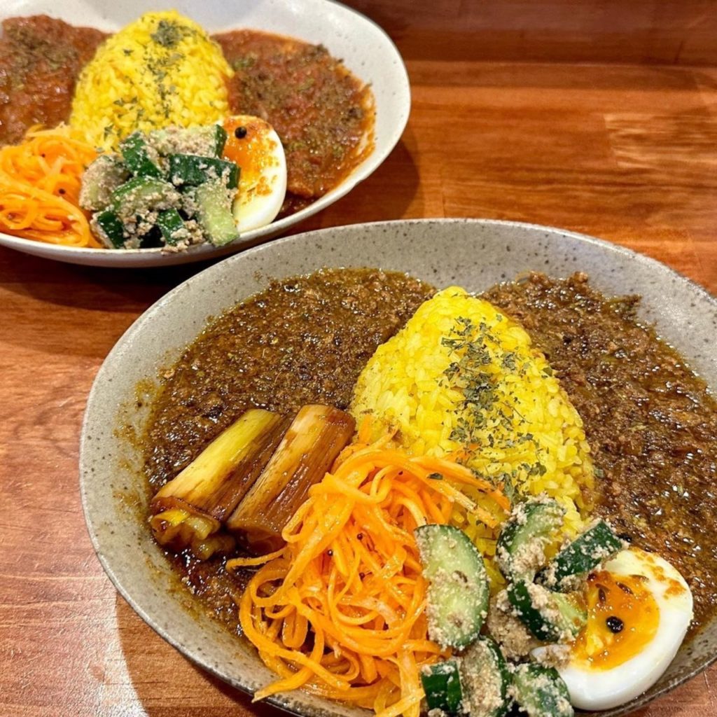 和風キーマは出汁と鶏挽肉がスパイスと調和してて、チキンはトマトの酸味感じます😋🍛