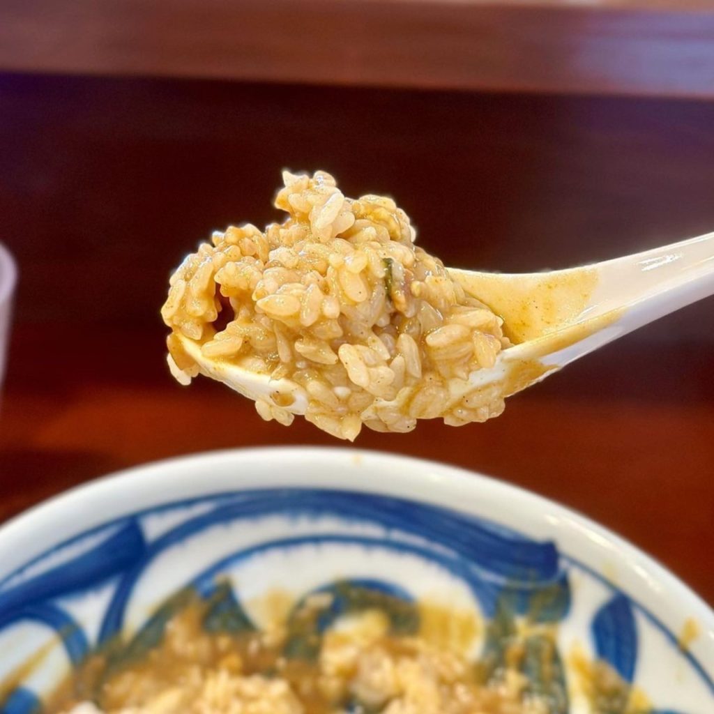 麺食べ終わったら小ライス大盛りをドボン‼️🍚