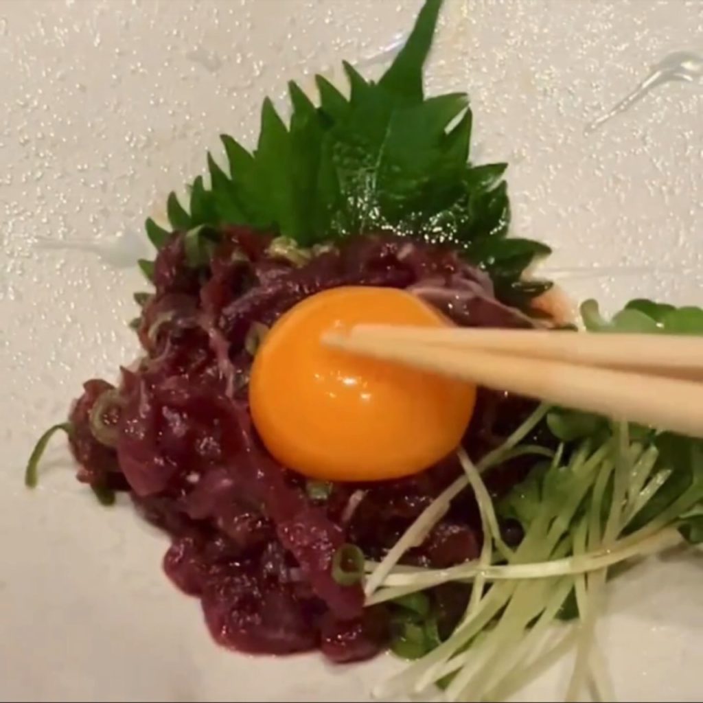 韓国海苔で食べる馬肉桜ユッケ、甘辛ダレでウマウマ🐴🌸