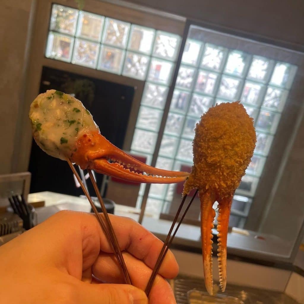 カニ身と白身のすり身のモチモチ感が相性がよく合い、しいたけと三葉も入っていて、風味も感じられ最高の1串です!