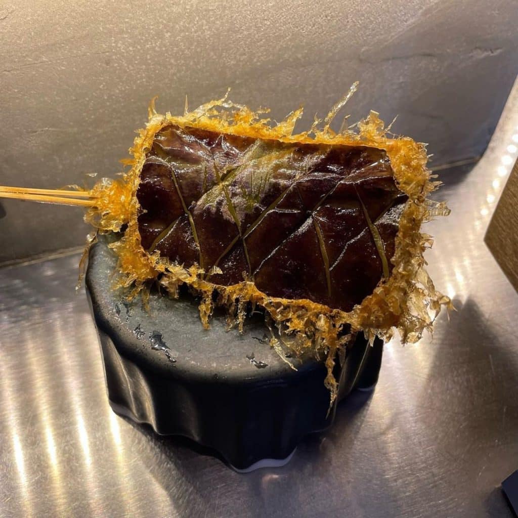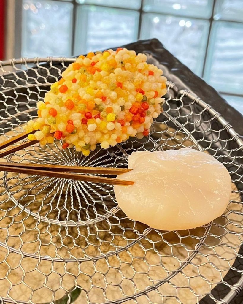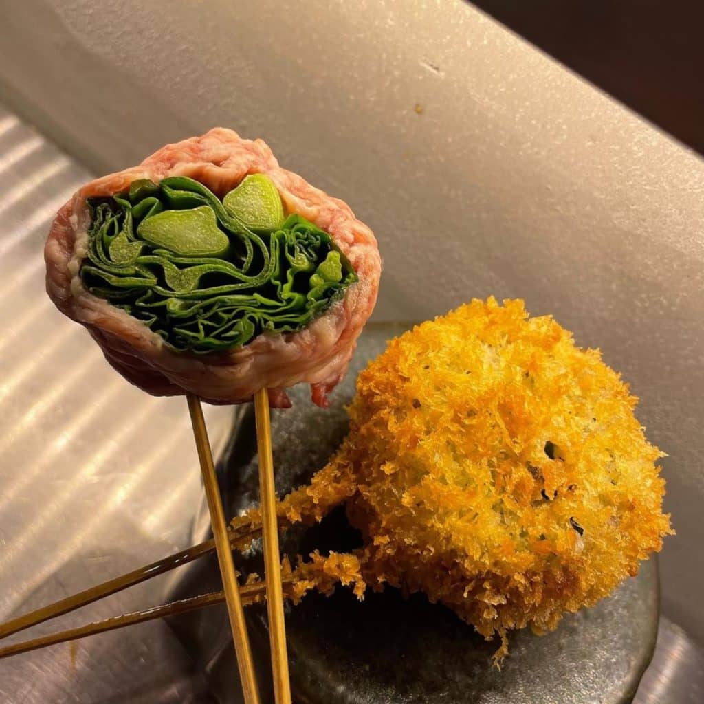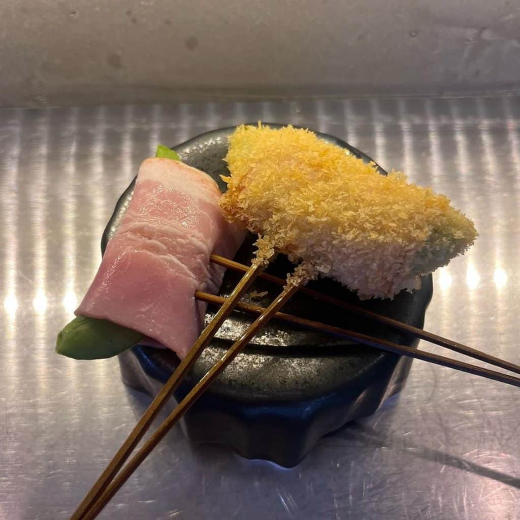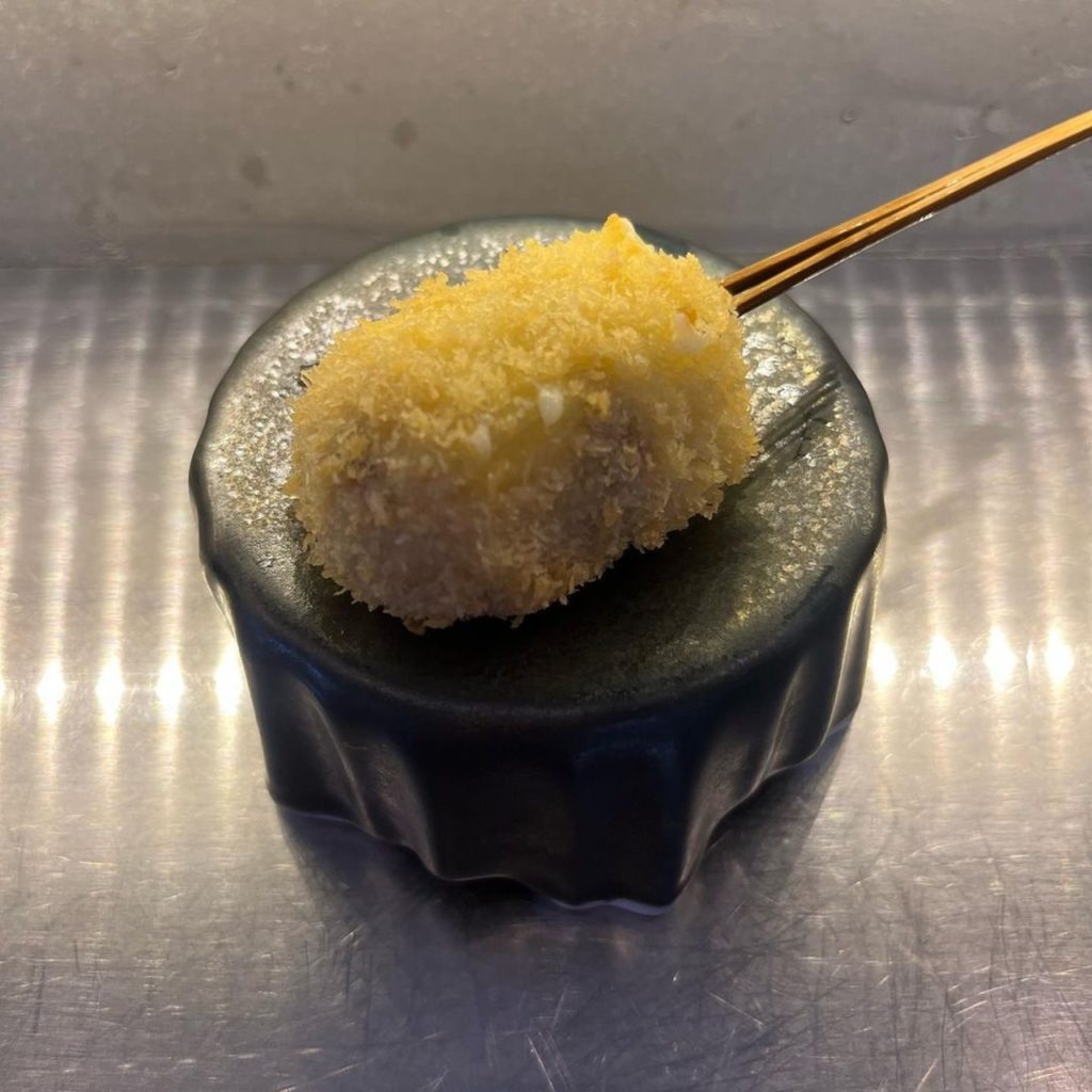 パン粉ではなく、あられをつけて揚げているのでサクサクとした食感とホタテのみずみずしさがマッチした1串です😄