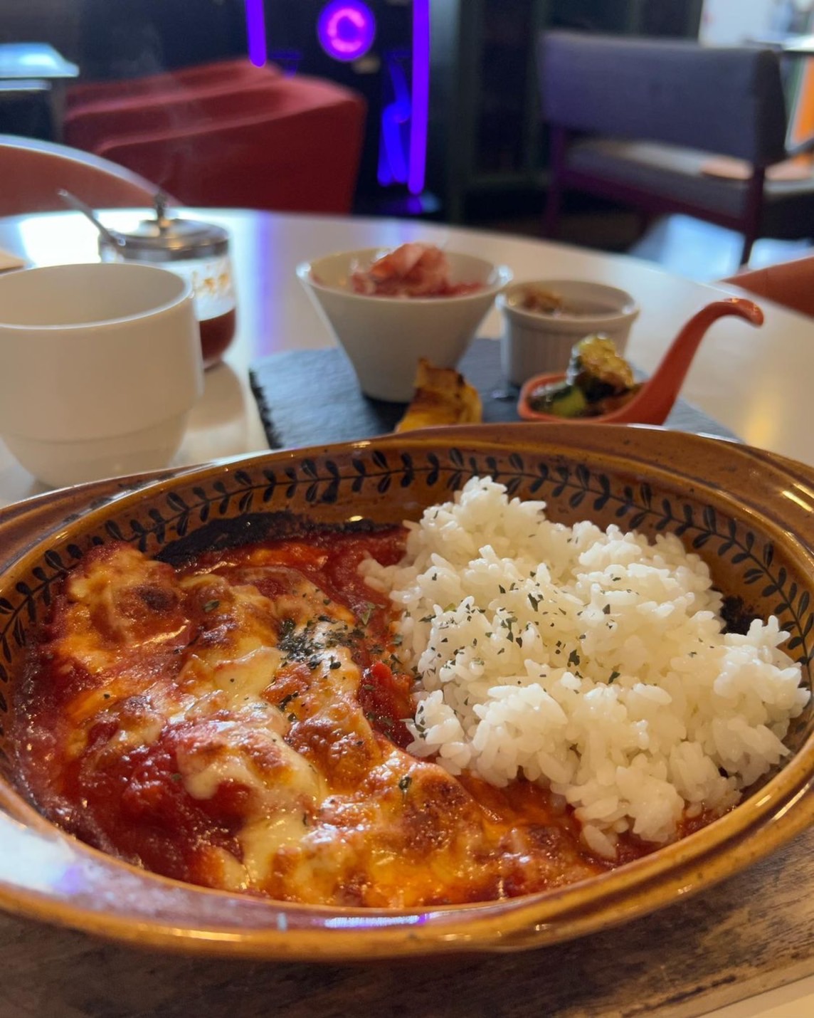 スパイスとハーブでじっくり漬けられた鶏肉がゴロゴロ入ったトマトソース🥹🍅とろーーりチーズ💛たまらん!