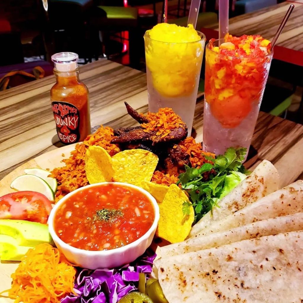 タコスの皮に、お野菜とクリスピーキチンを乗せて、サルサソースをたっぷり掛けていただきます😋 (pic4&6枚目)