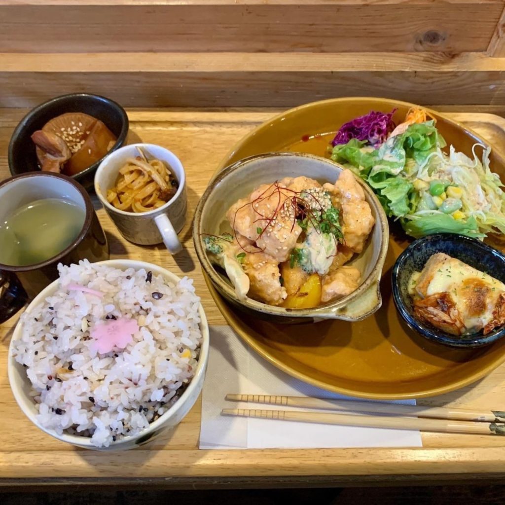 ご飯は五穀米、そしてその上に桜の花びらが😍🌸