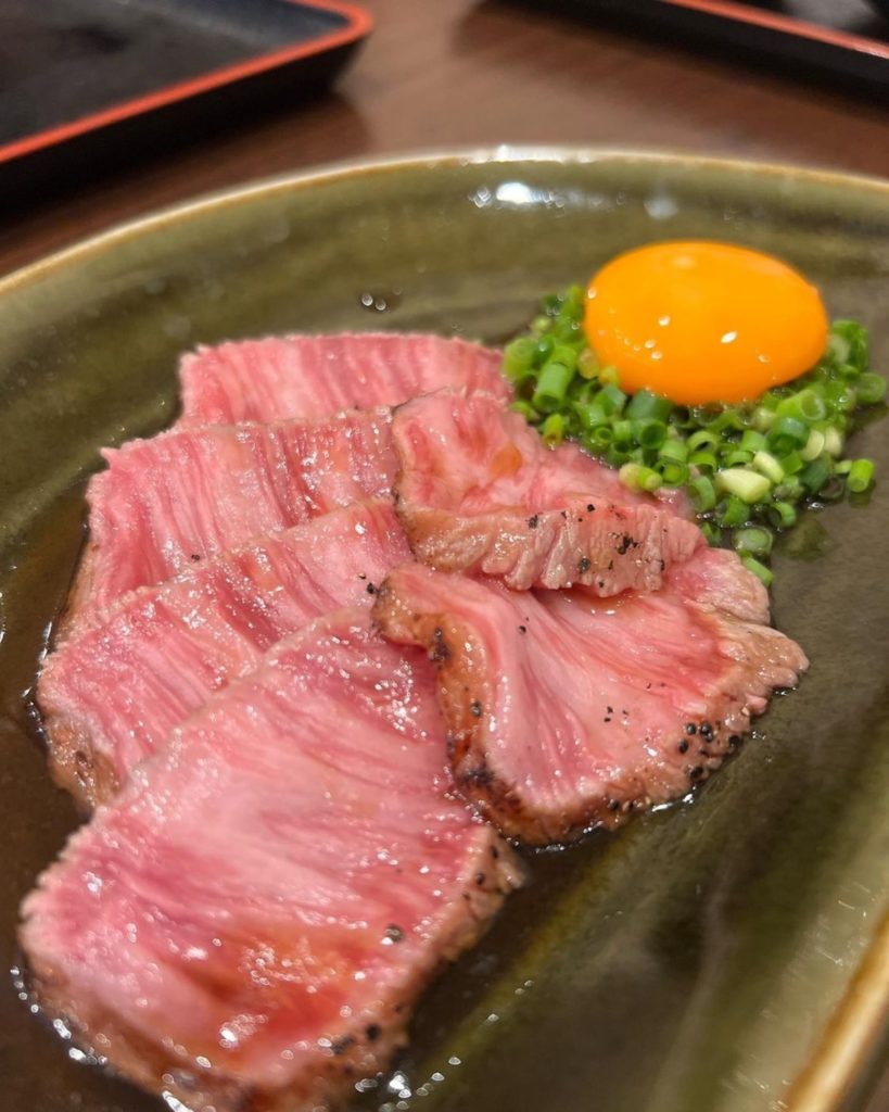 そしたら裏メニューの「知多牛月見タタキ」を出してくれた(レア肉大好きなわたしたち歓喜🙌🙌🙌