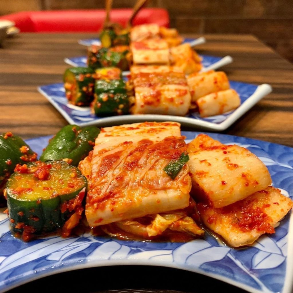 ●キムチ3種盛(白菜キムチ、カクテキ、オイキムチ)