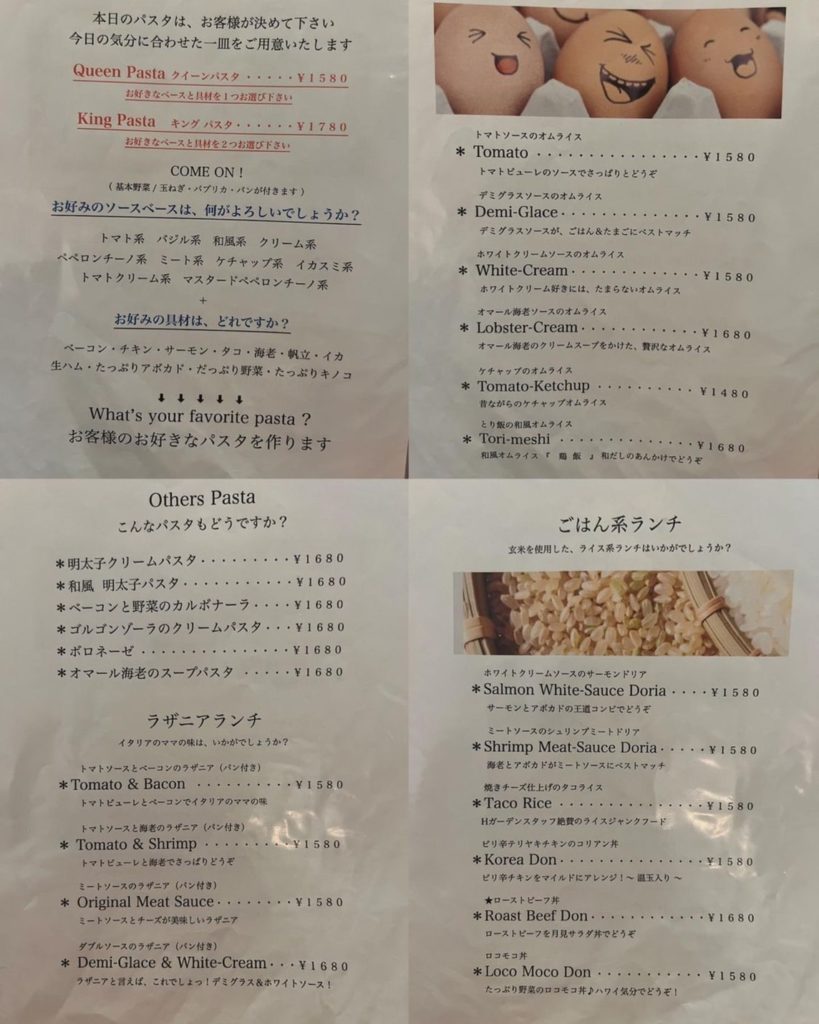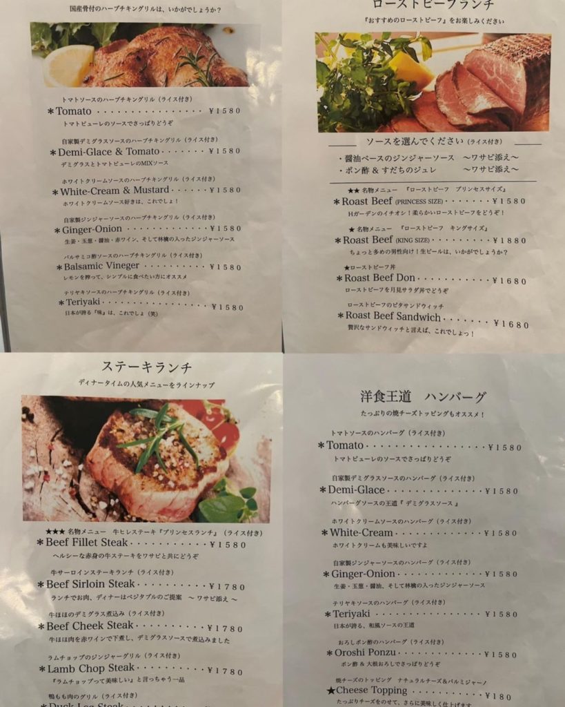 他にもハンバーグ、パスタ、ドリア、ラザニア、ステーキ、チキングリル、ラムグリル、鴨グリルなど