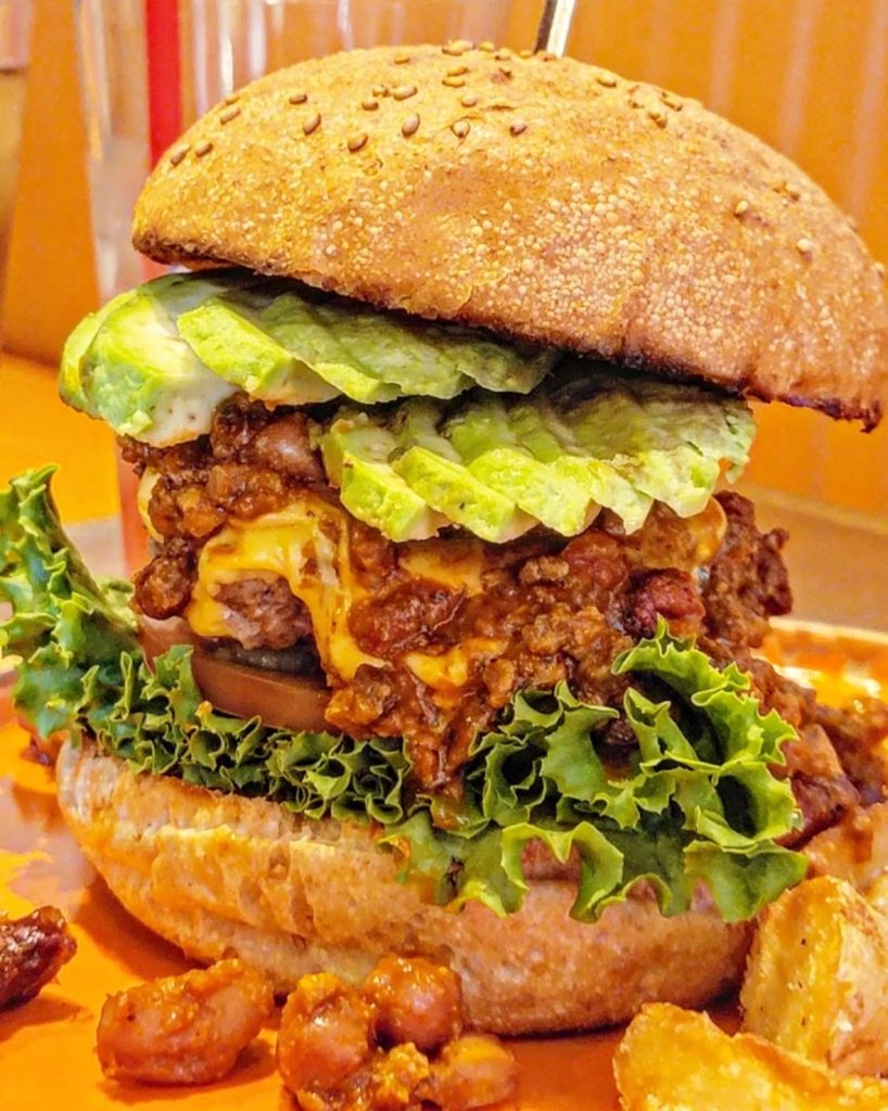 表面パリッとでもなかはふわふわバンズ!こぼれ落ちる位大量のチリコンカン