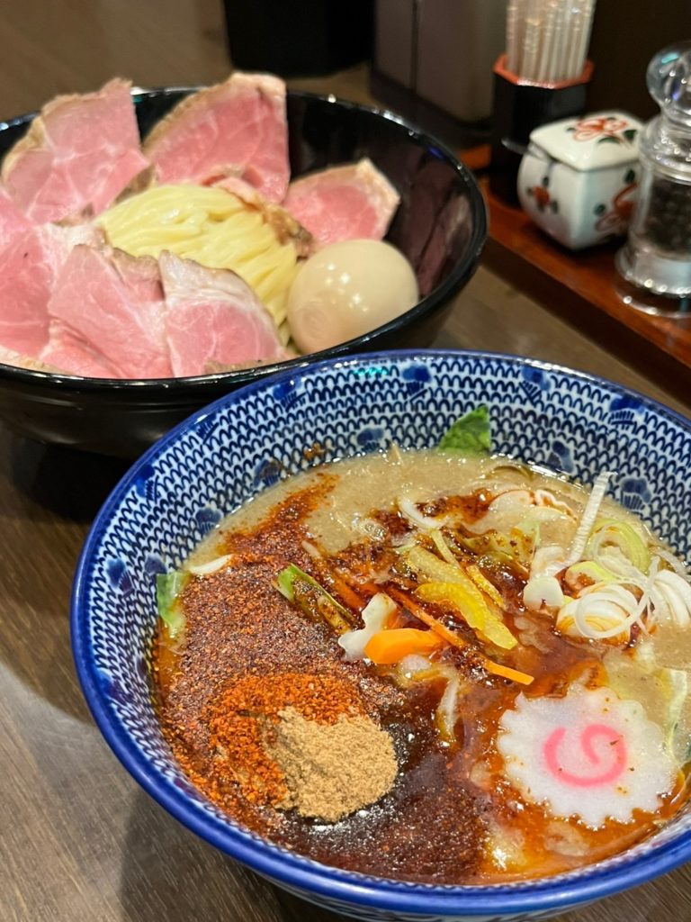 濃厚なスープとかなり刺激的な辛さが極太麺に絡みついて、辛党にはたまらんつけ麺です🤩