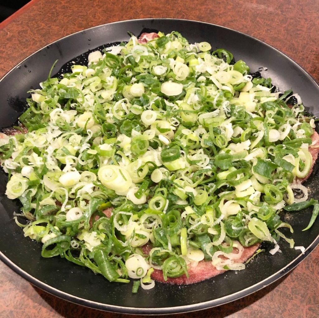 あつあつの鉄板でネギを焼きながらタンで巻いて食べると、、