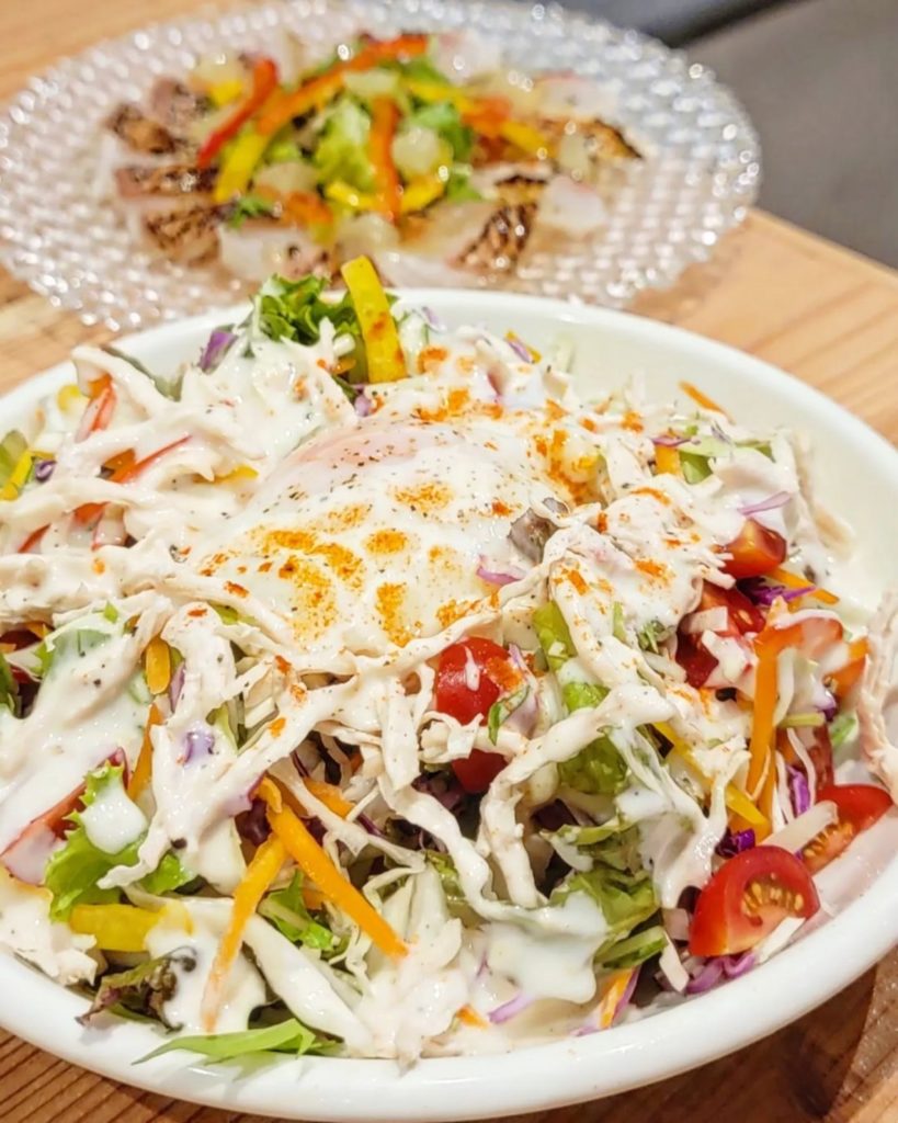 🍴鶏ササミと温泉玉子のシーザーサラダ