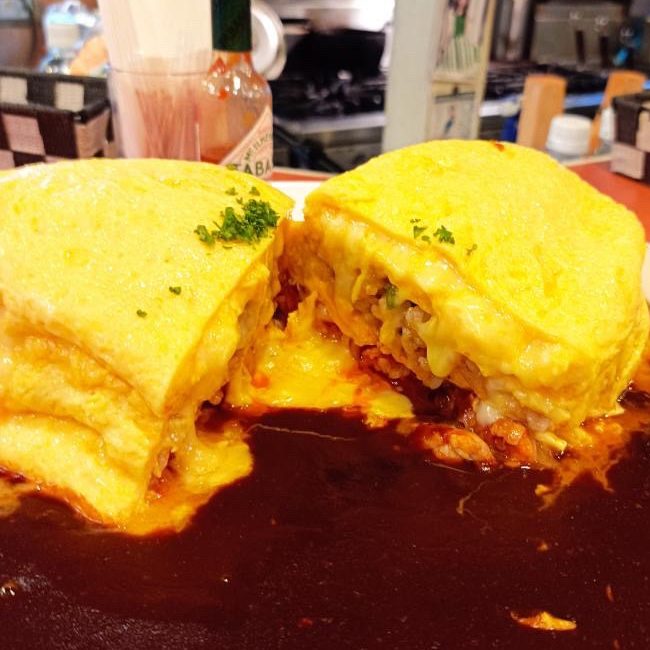 パッカンすると滝のようにチーズが流れるオムライス!